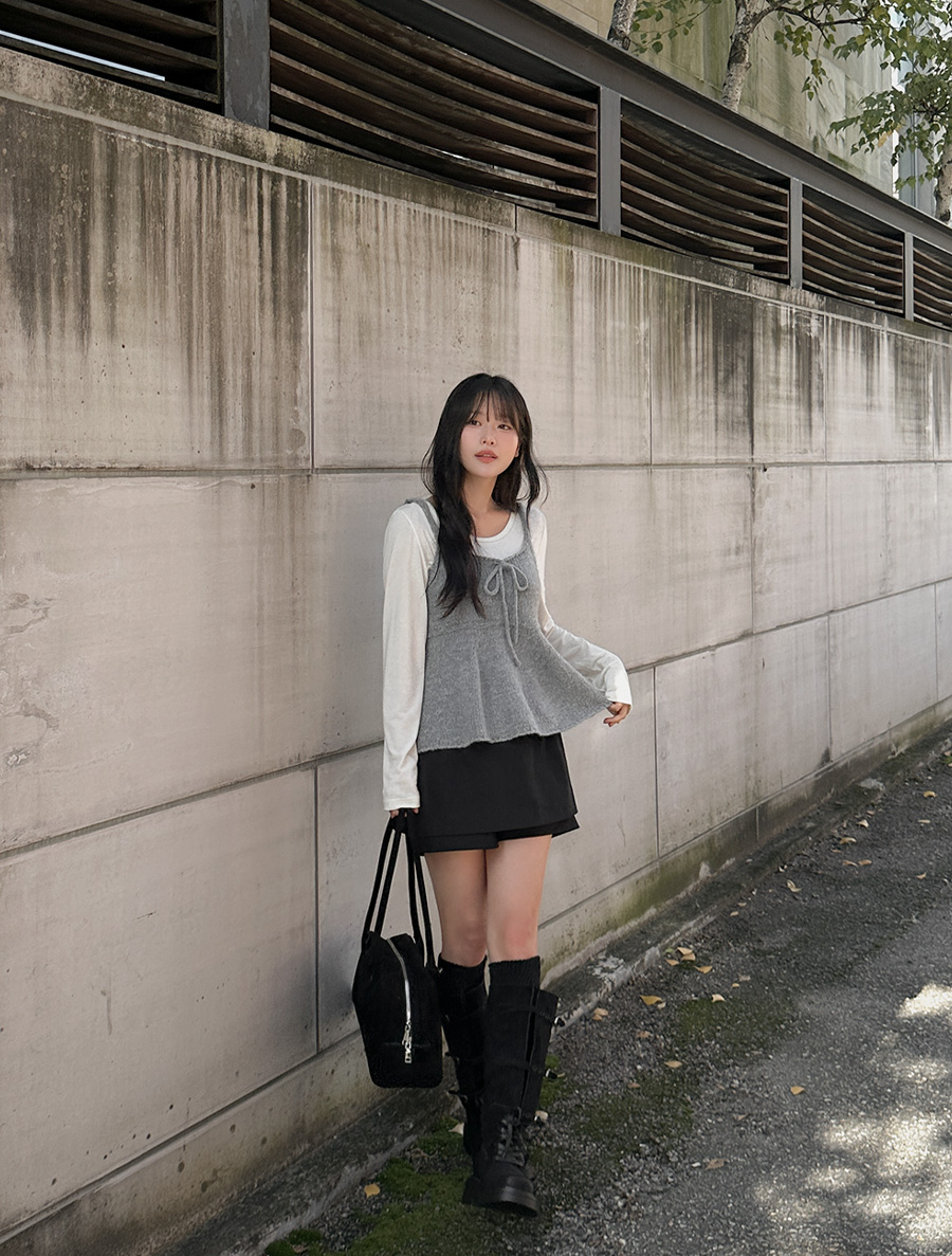 네크라인 중앙에 리본 스트랩 디테일로