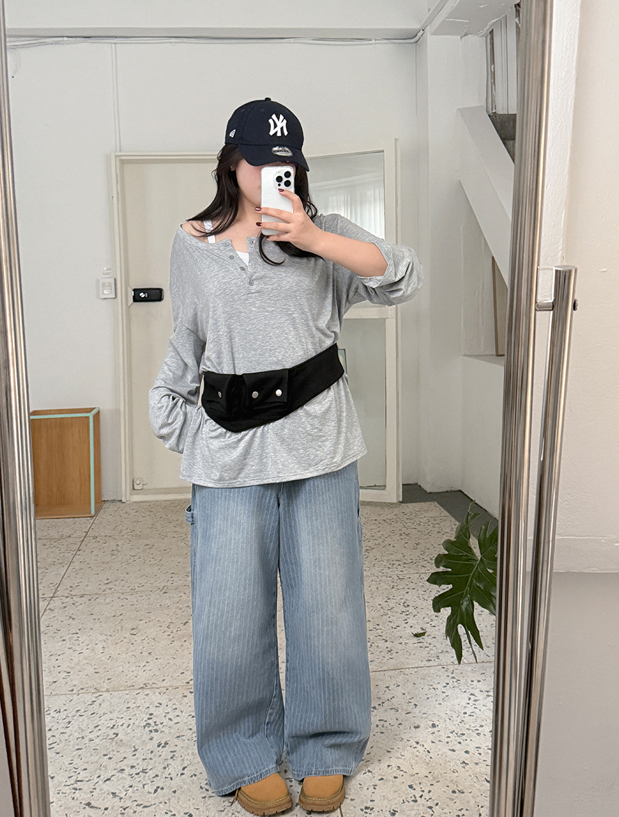 데님 팬츠에 더해 유니크하고 실용적인 포인트를 살려주었답니다!