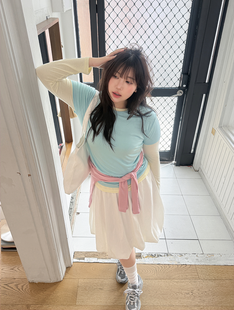 블루 반팔 + 아이보리 긴팔