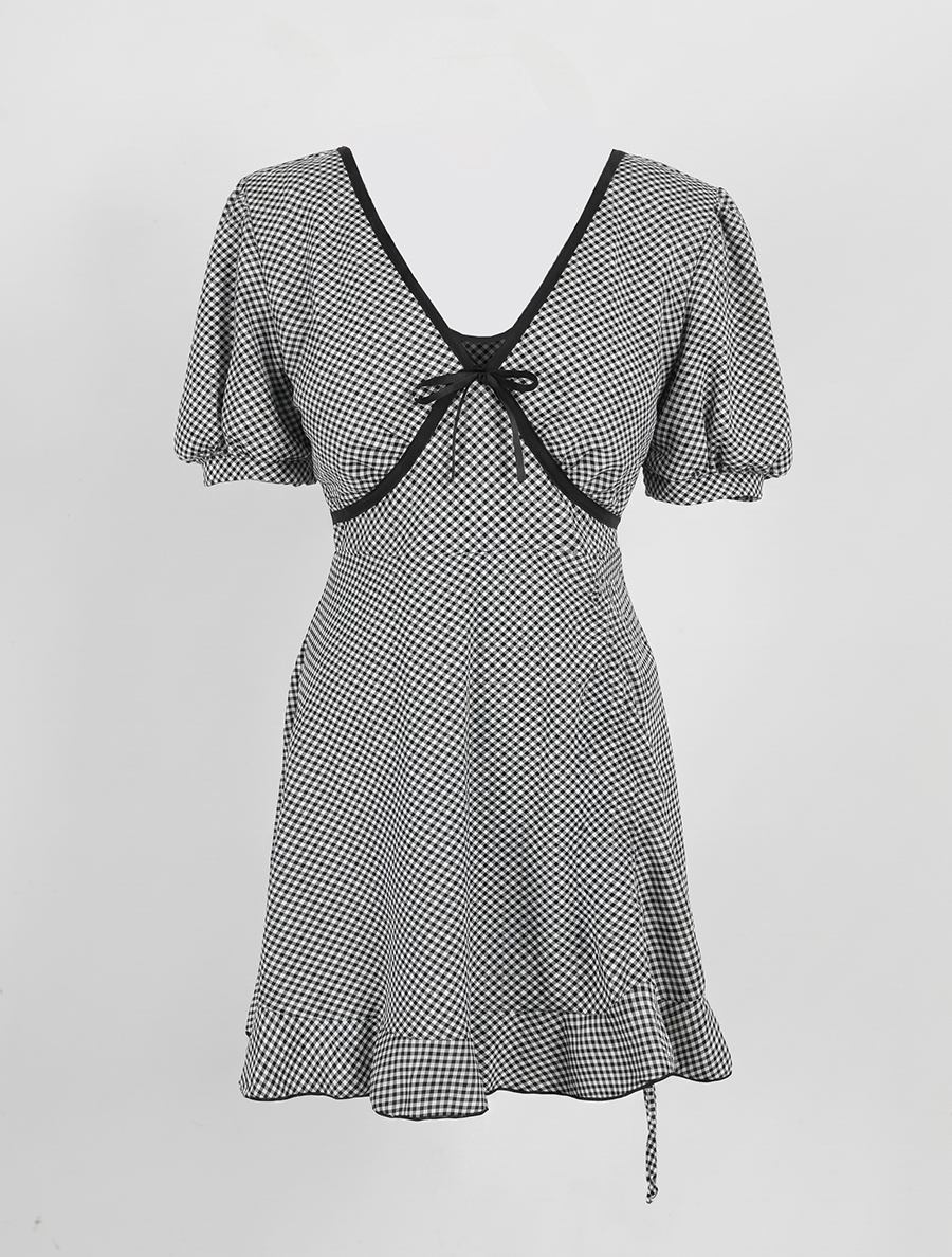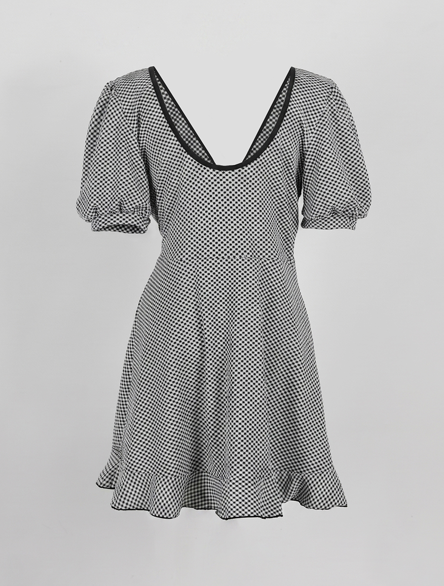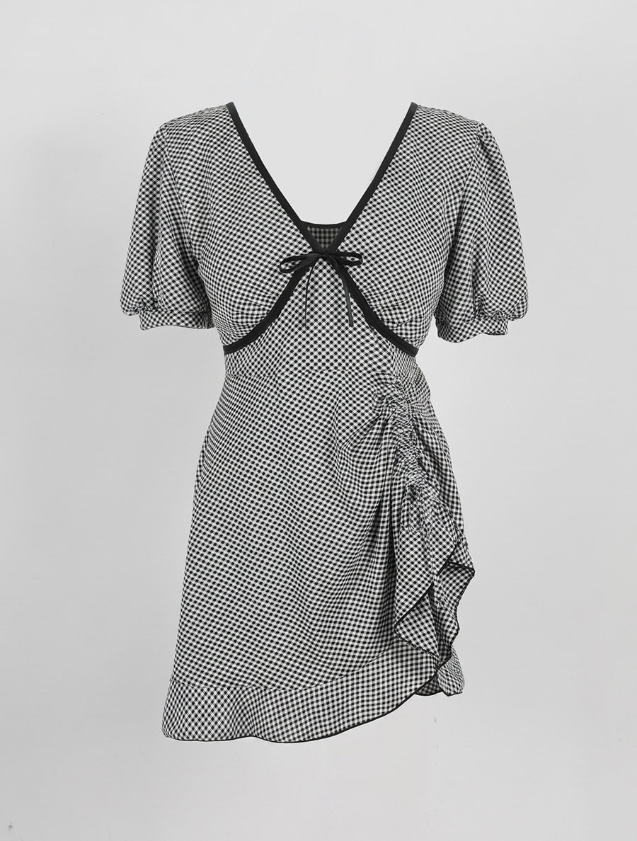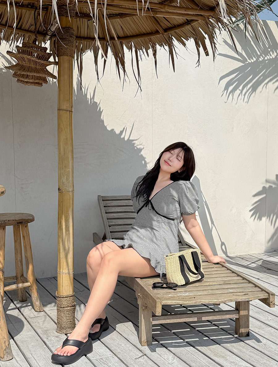스커트에 더해진 셔링 스트랩으로