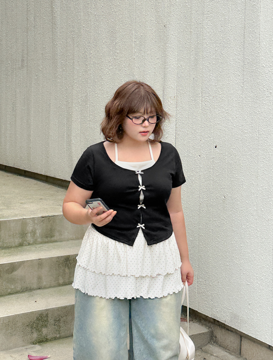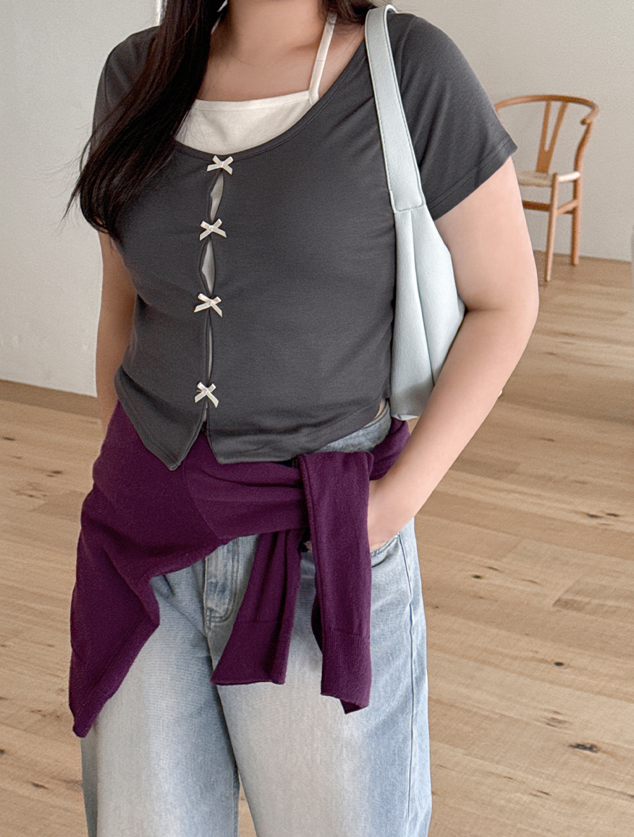 [EVELLET] Libte蝴蝶結裸肩背領T恤衫