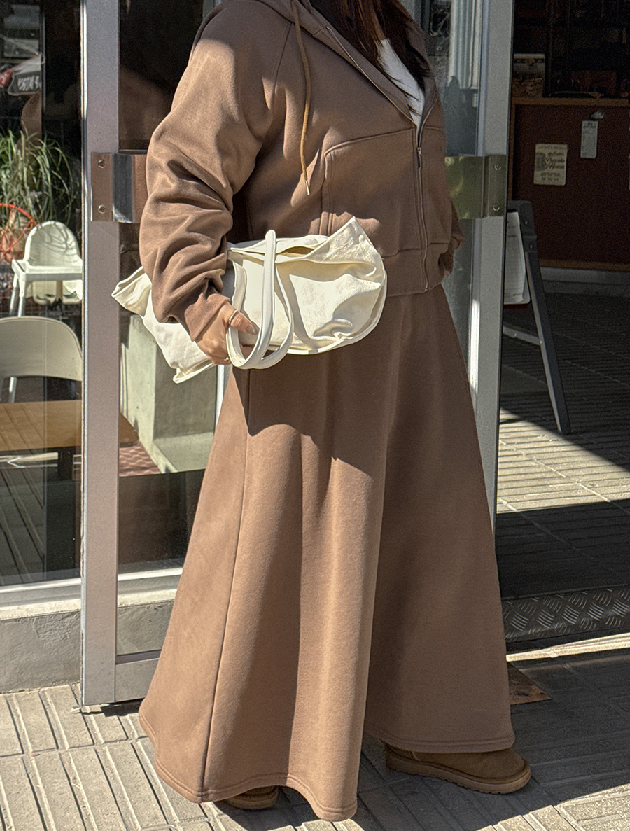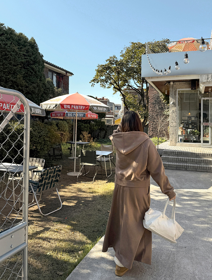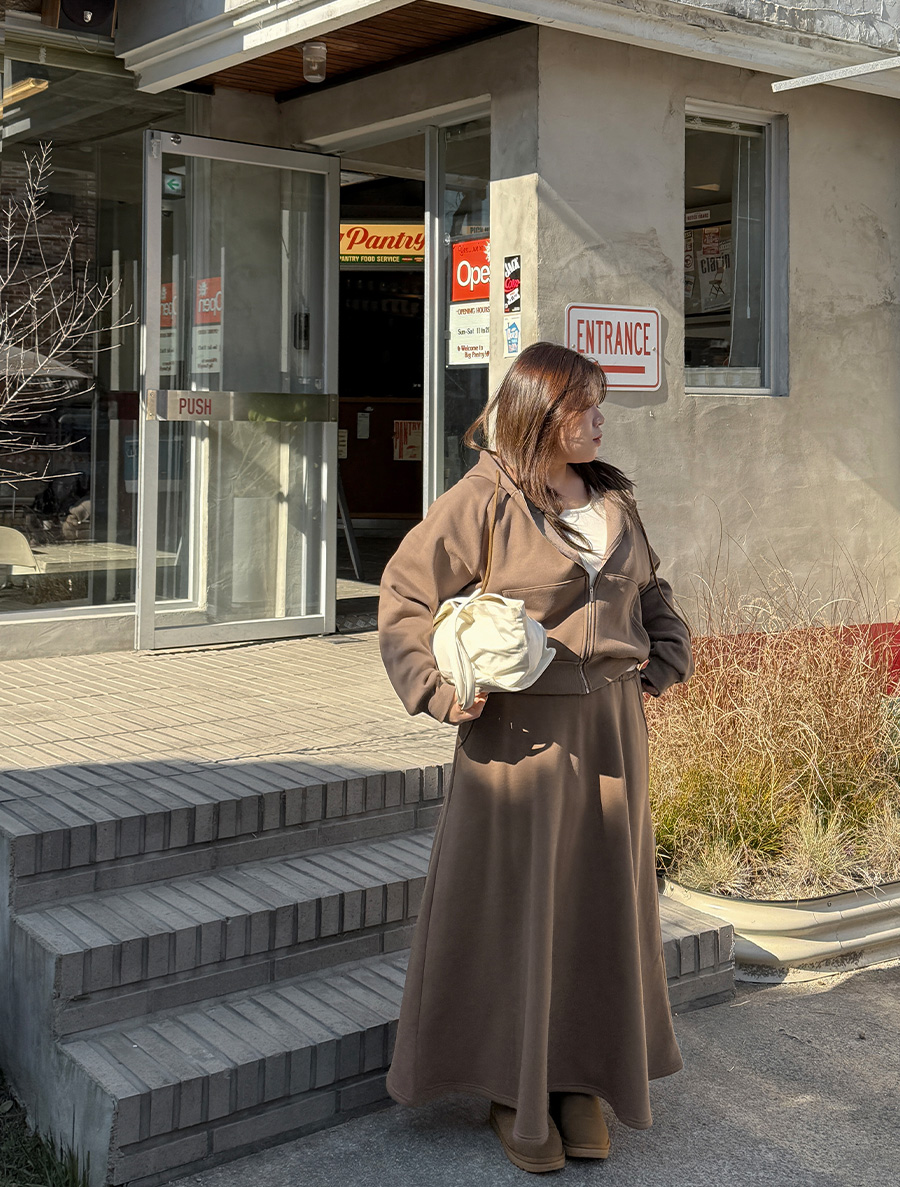 Jinpha 抓絨連帽拉鍊裙套裝