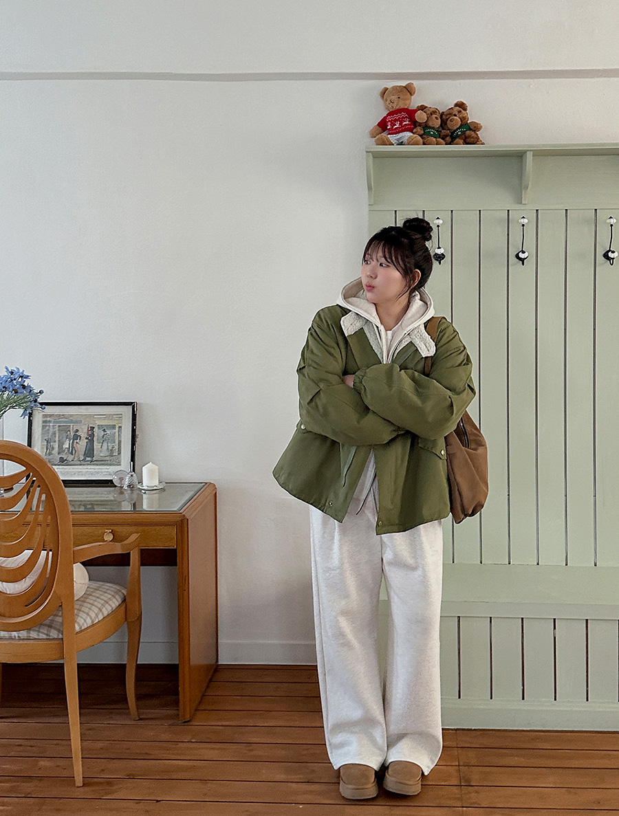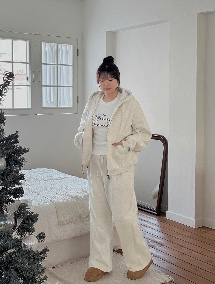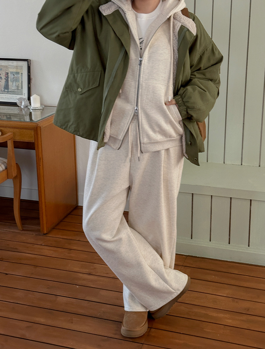 兩件式抓絨長腰褲