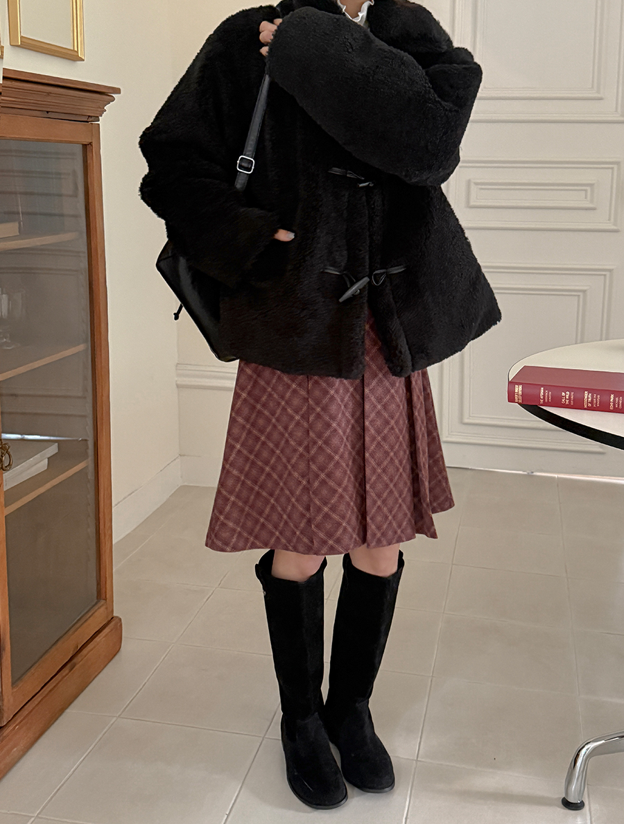 Renewa 格紋褶襉裙
