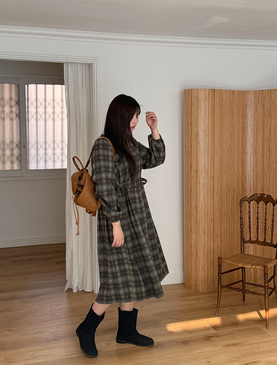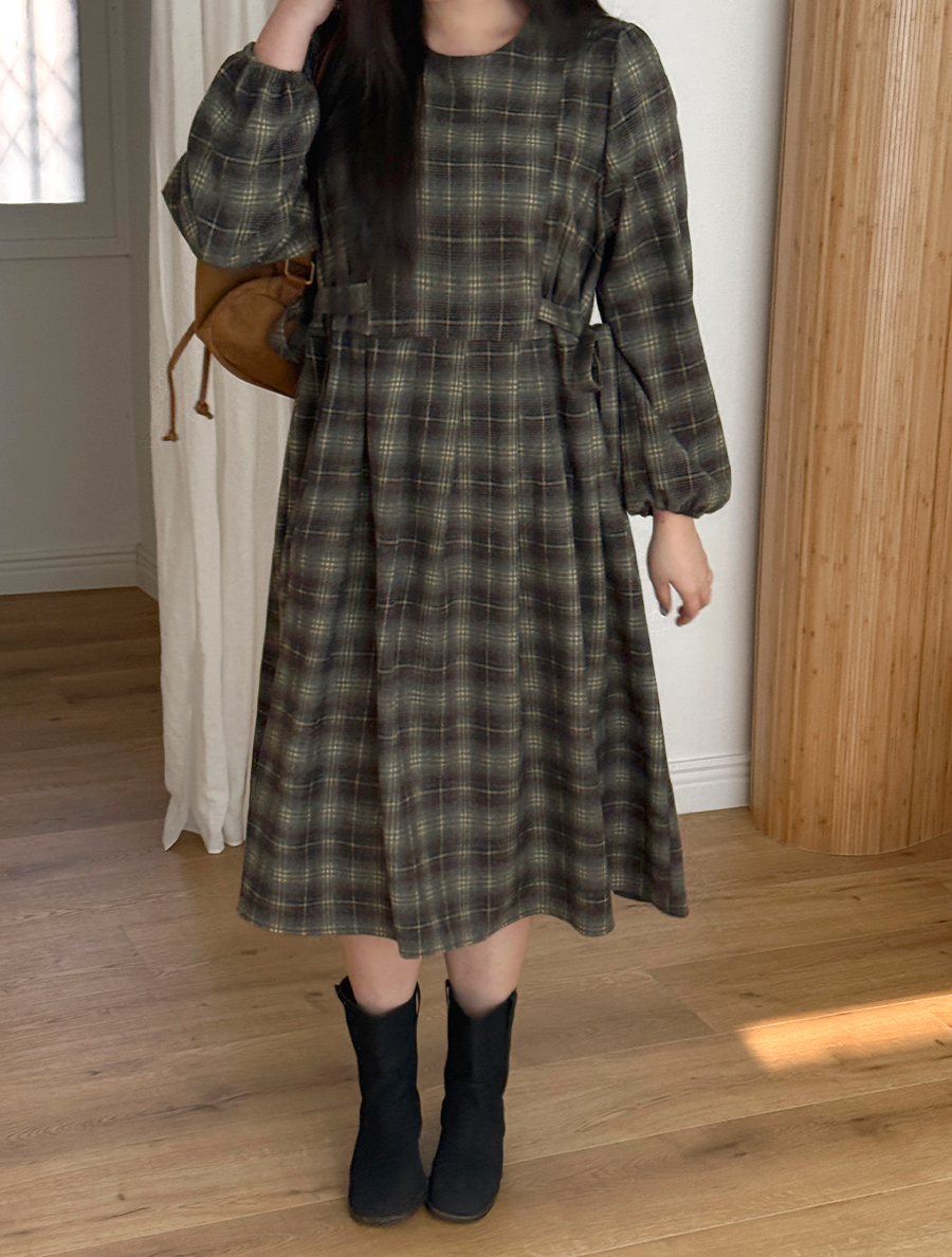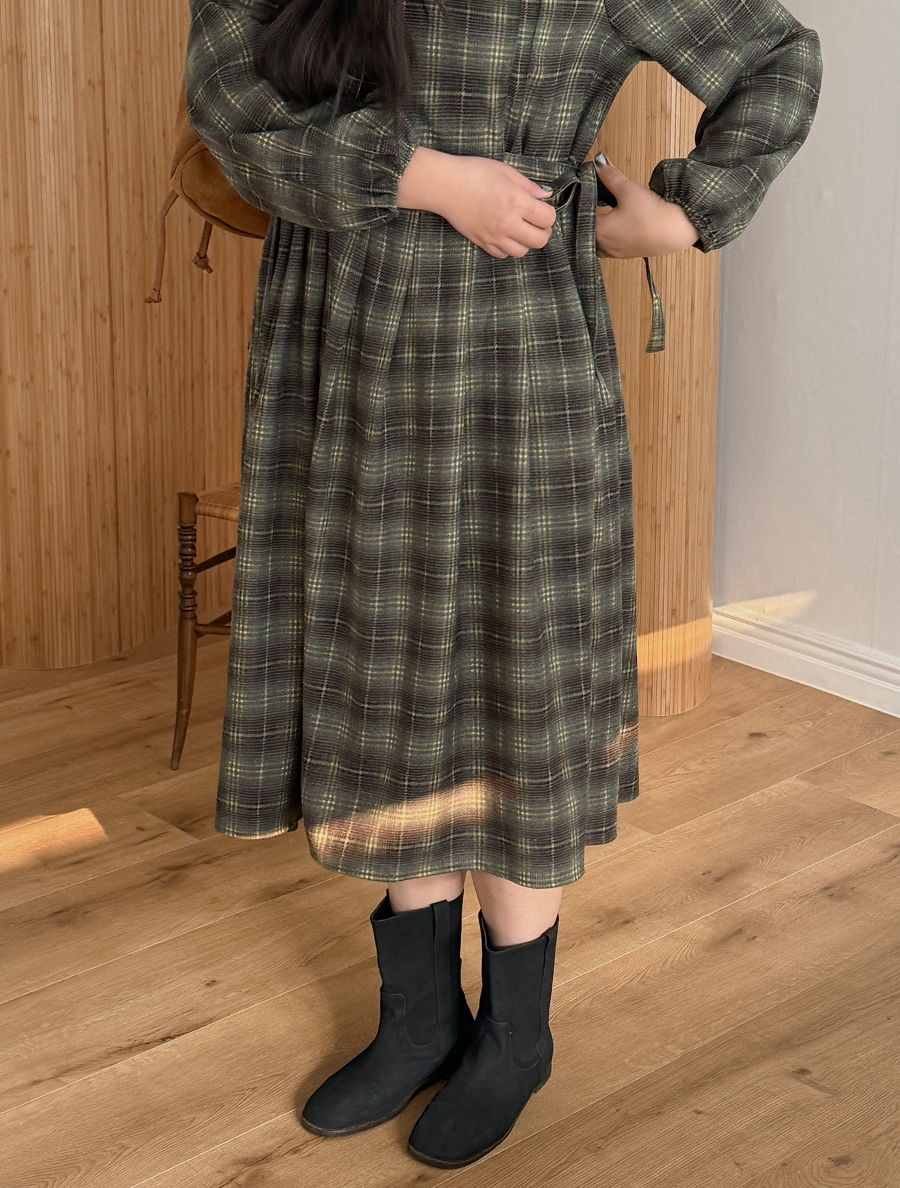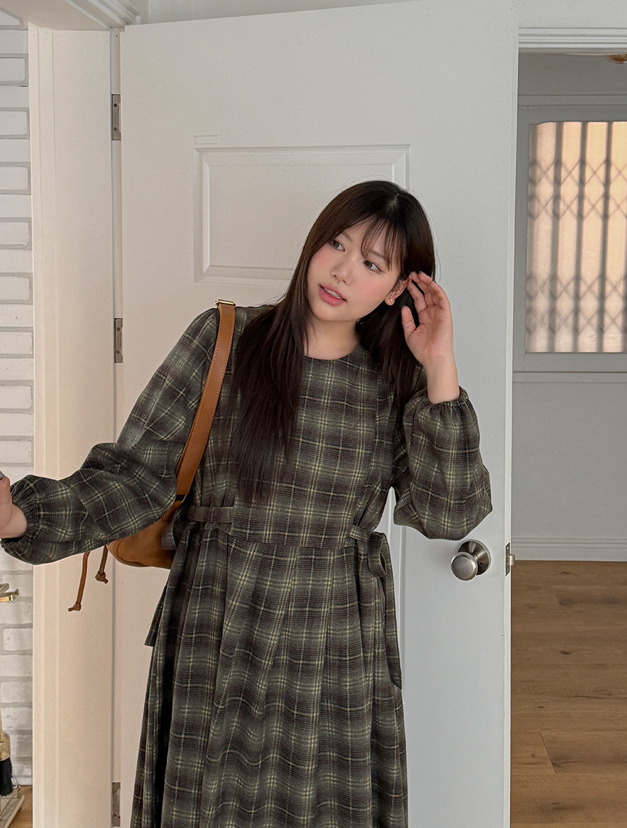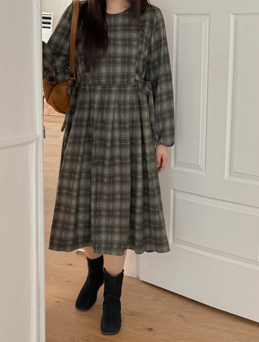 格紋蝴蝶結褶襉長袖西式