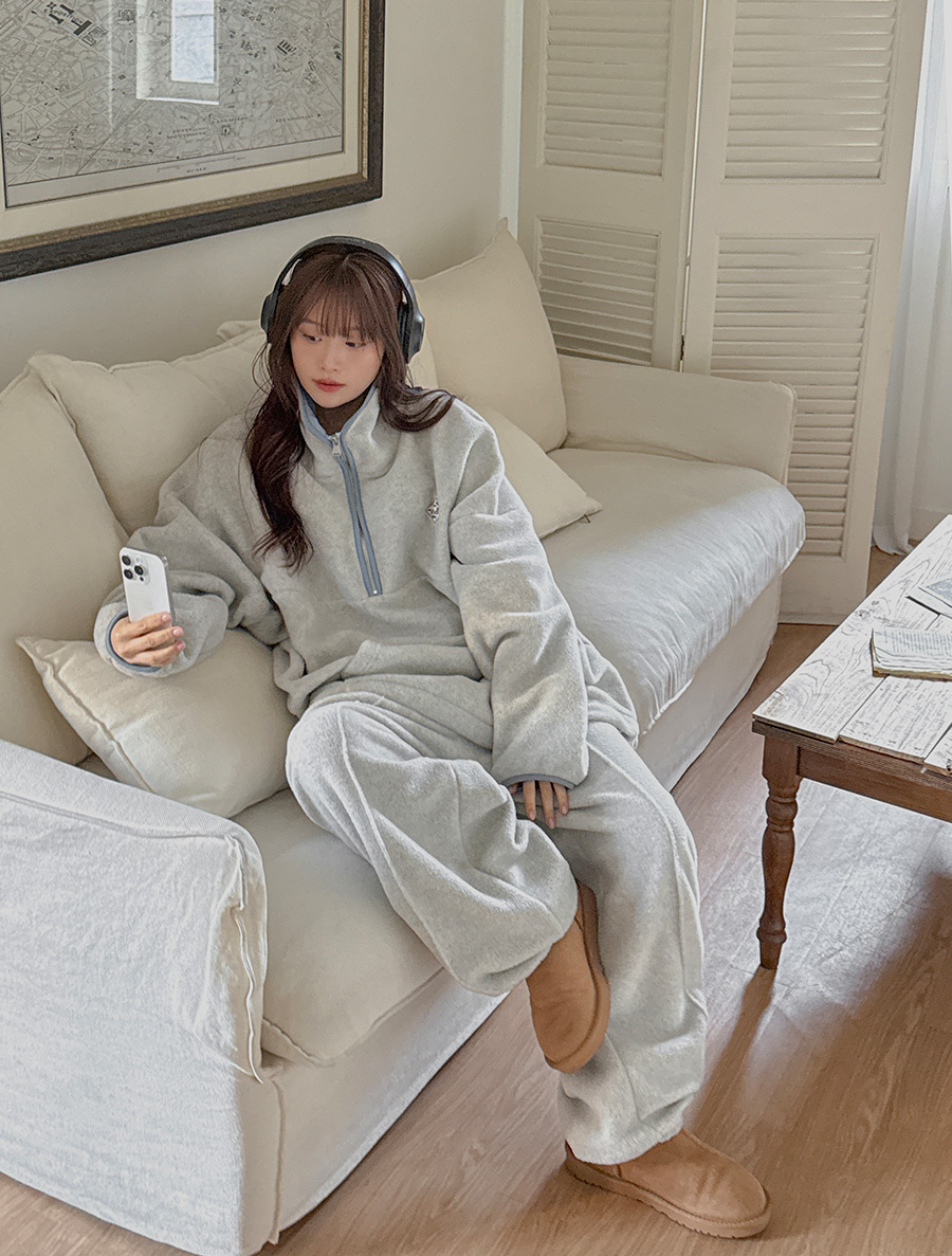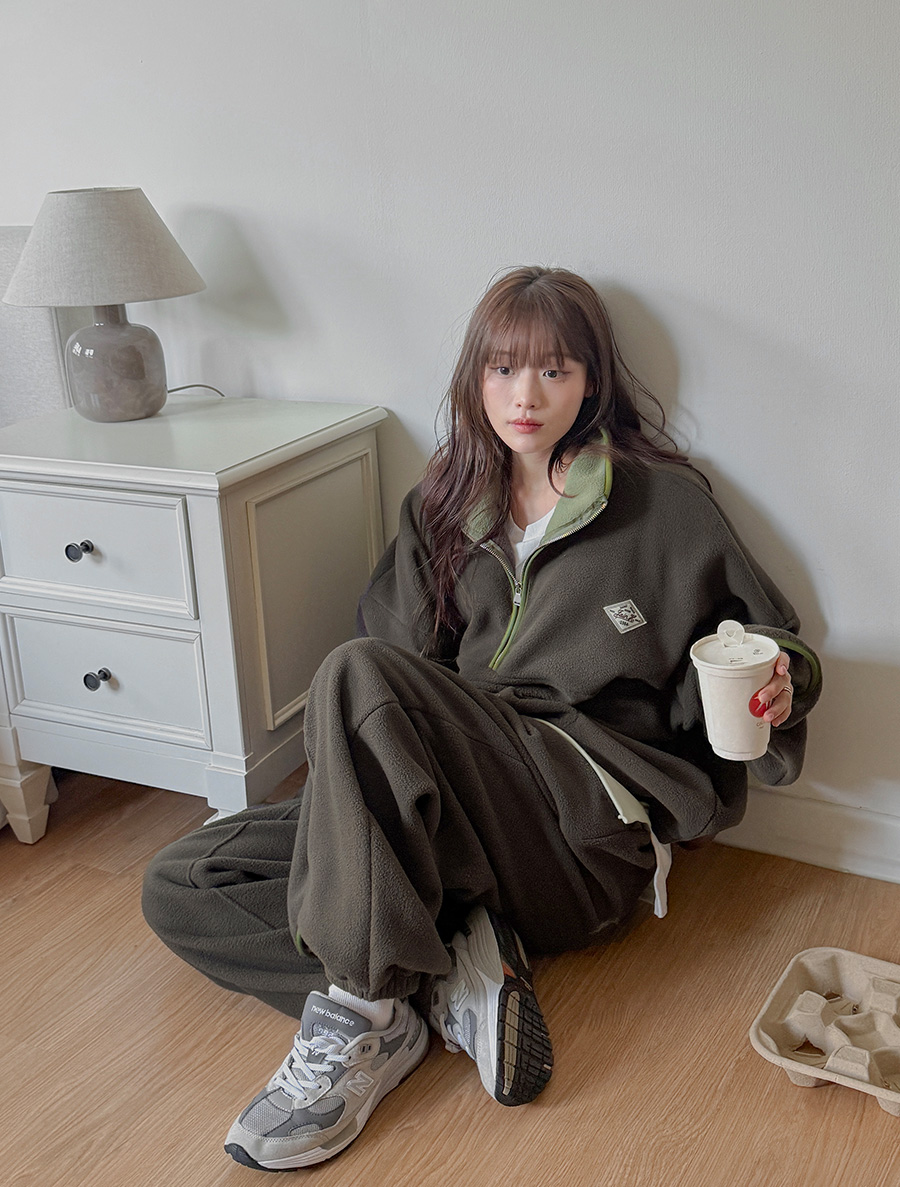 抓絨撞色拼接半拉鍊衫