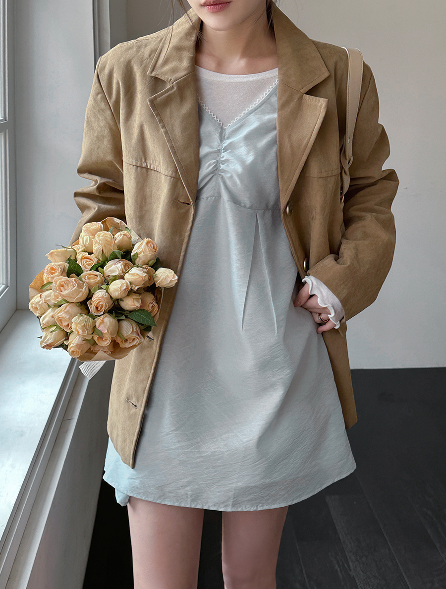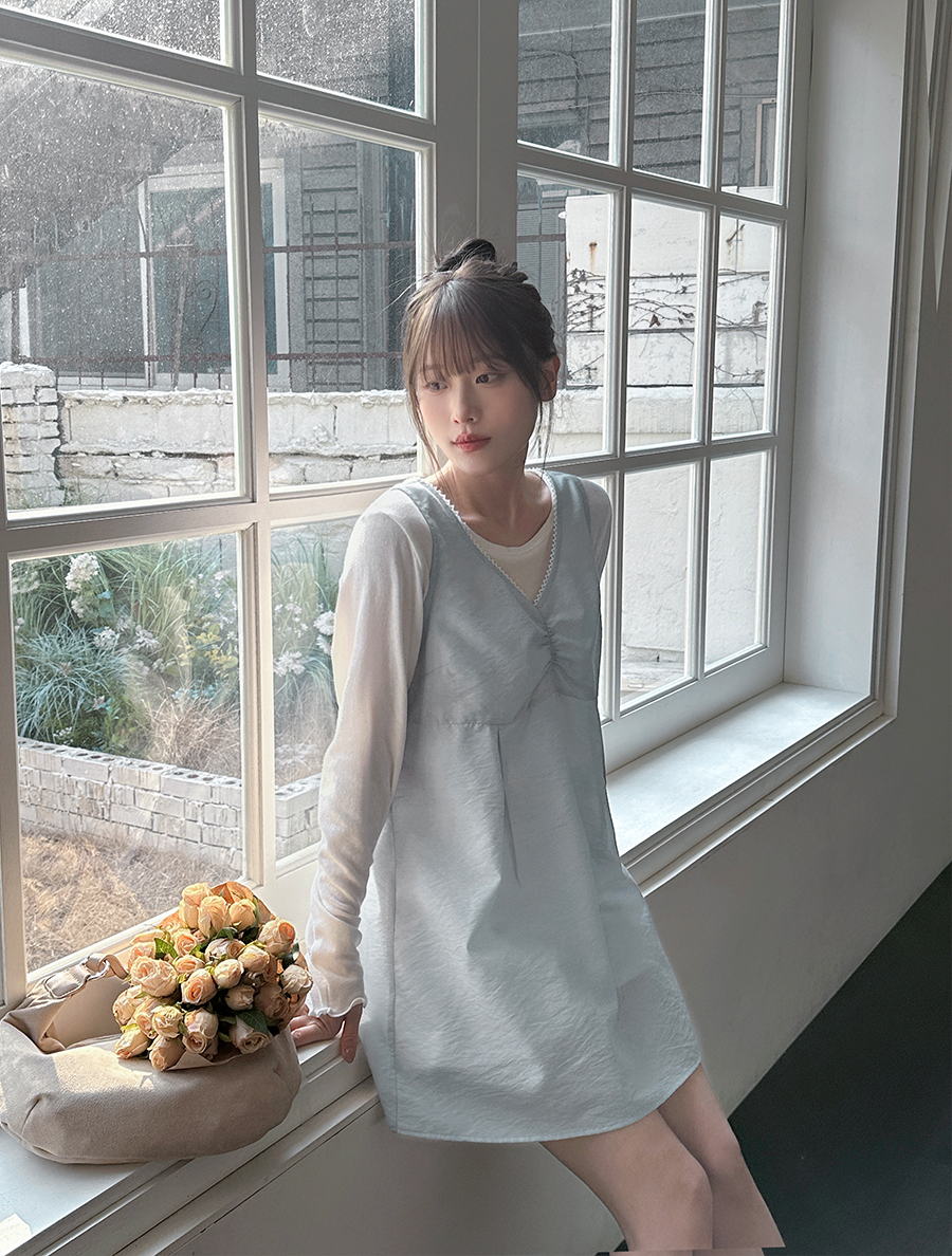 [EVELLET] Herdin蕾絲褶皺分層迷你連身裙