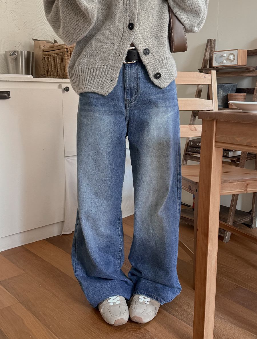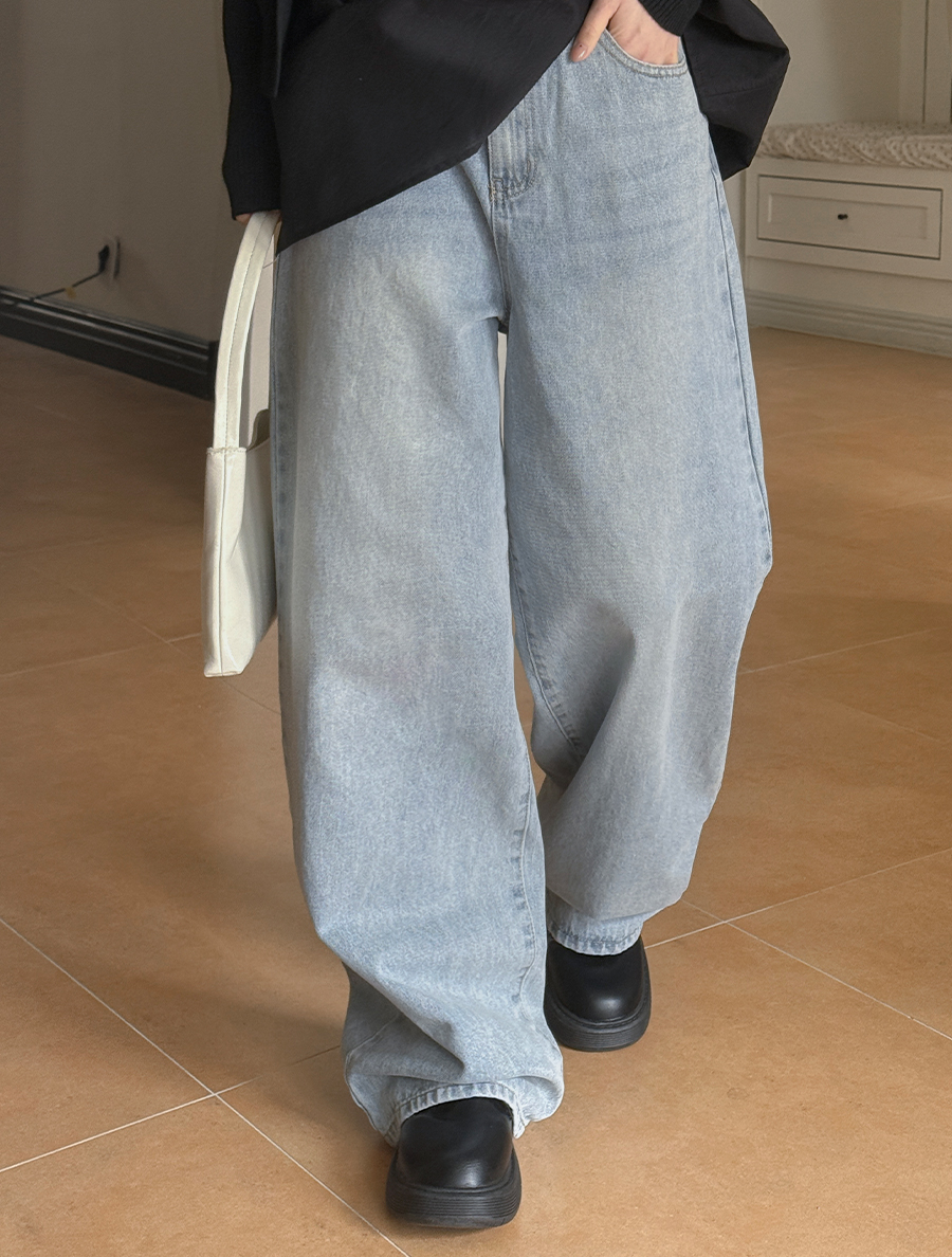 Deanmu 可水洗寬腿牛仔褲(按長度分類)