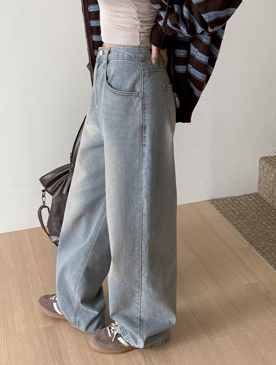 北府水洗闊腿長牛仔褲