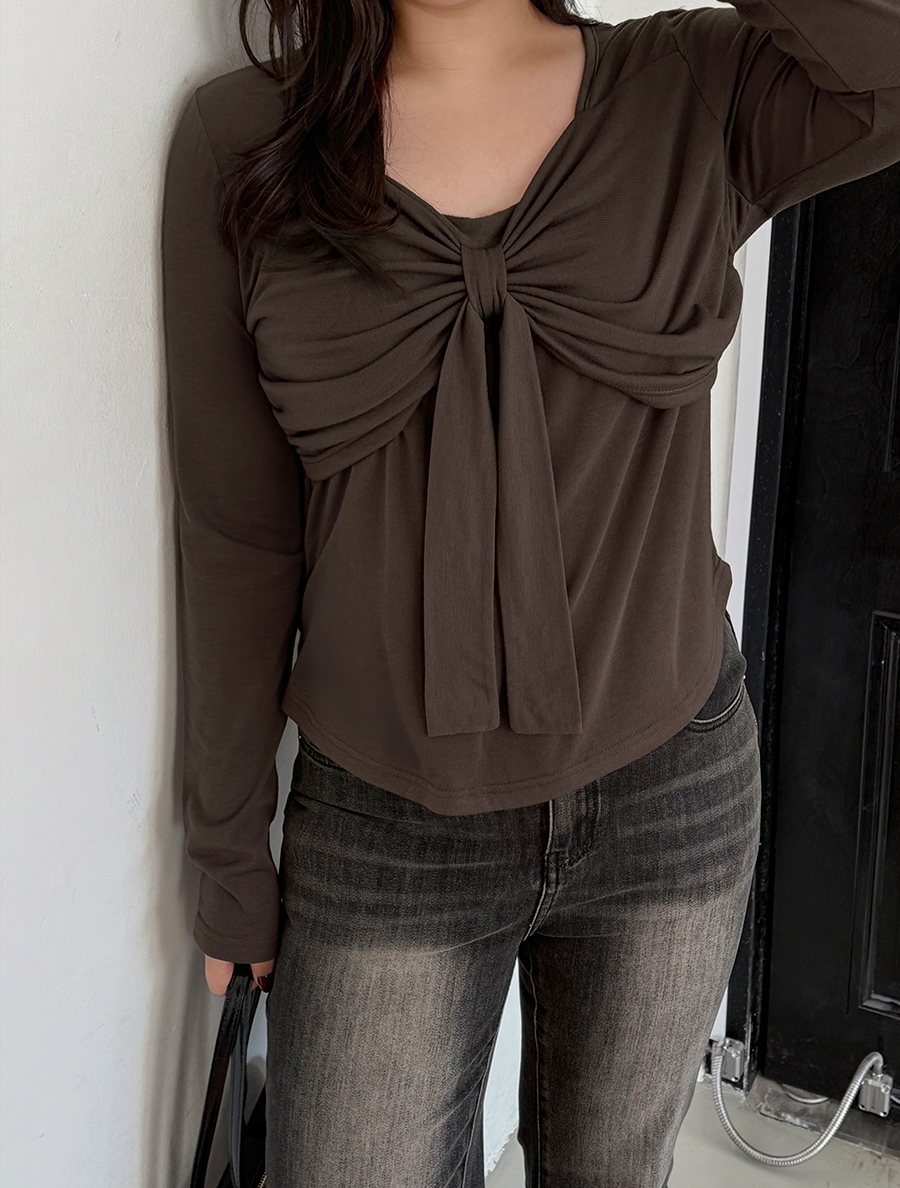 Jutimu 蝴蝶結繫帶褶皺 T 卹