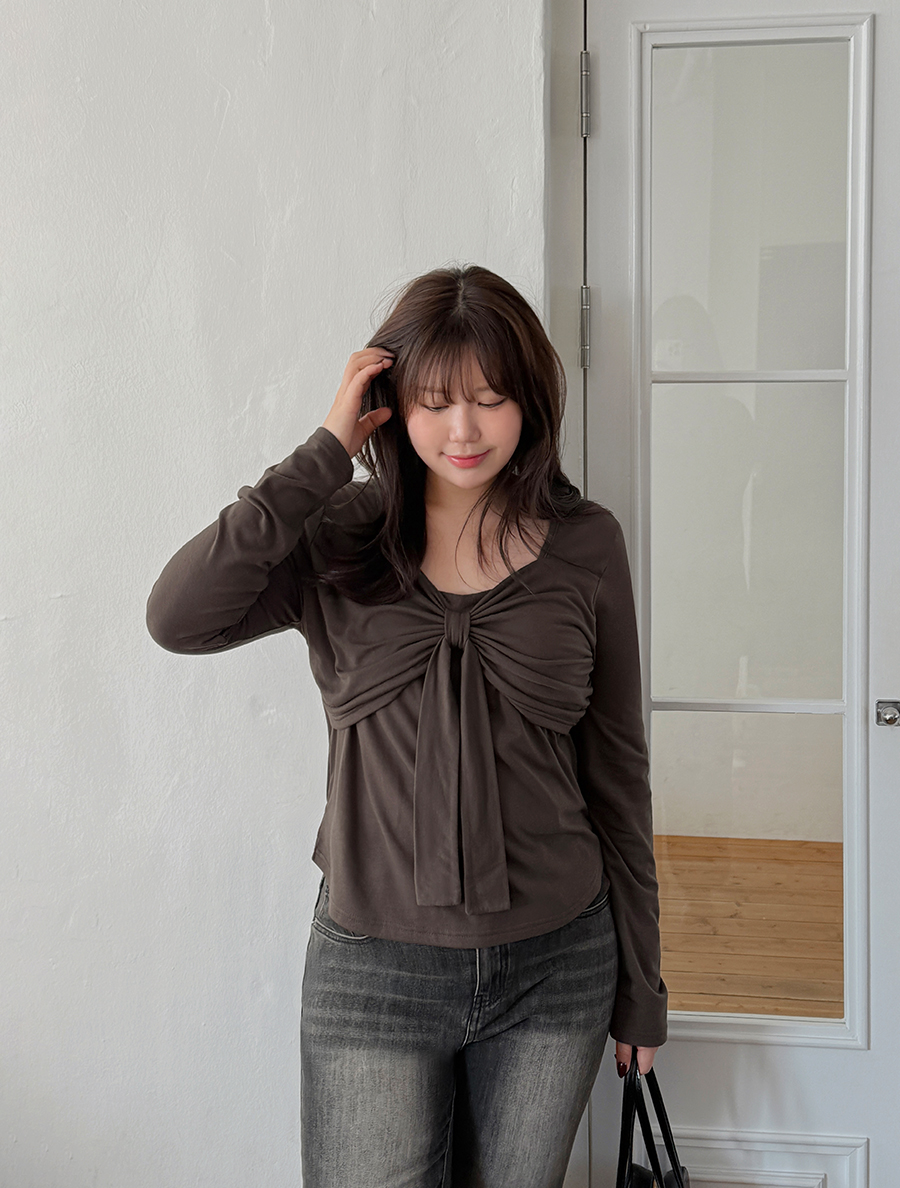 Jutimu 蝴蝶結繫帶褶皺 T 卹