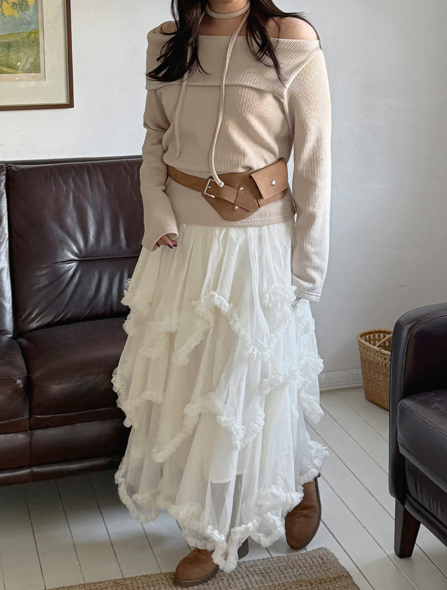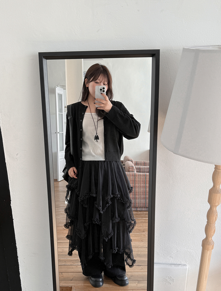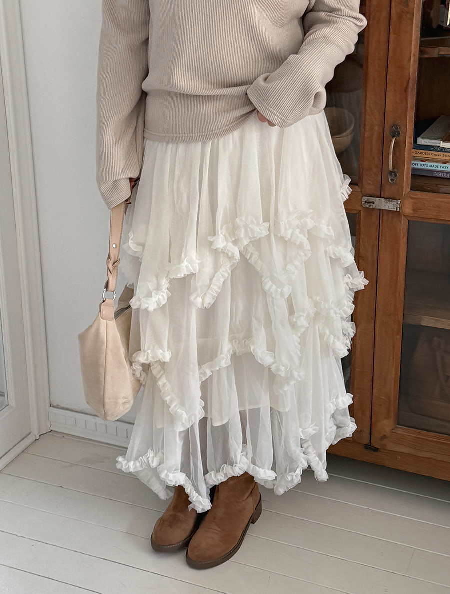 Tiremu 絲質不平衡褶邊康康裙