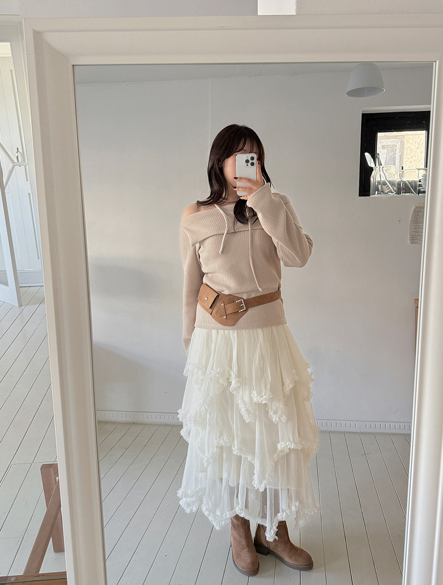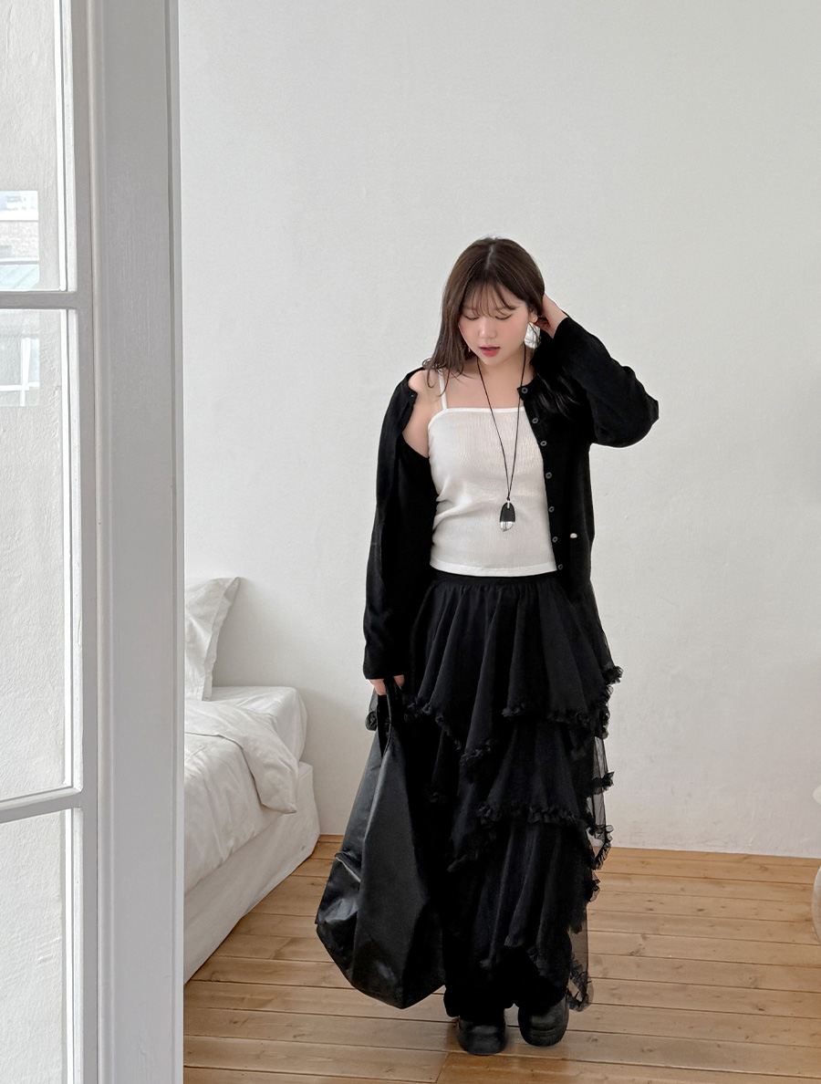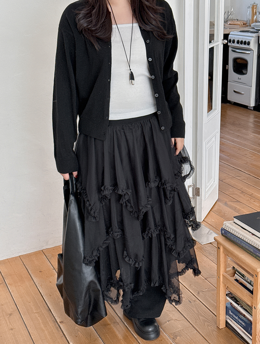 Tiremu 絲質不平衡褶邊康康裙