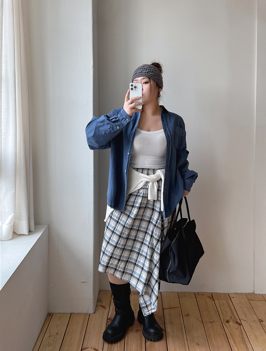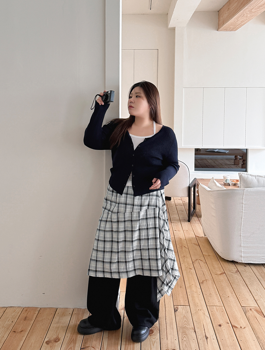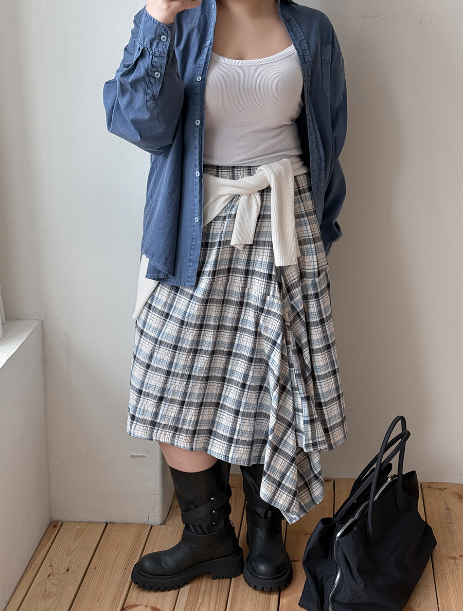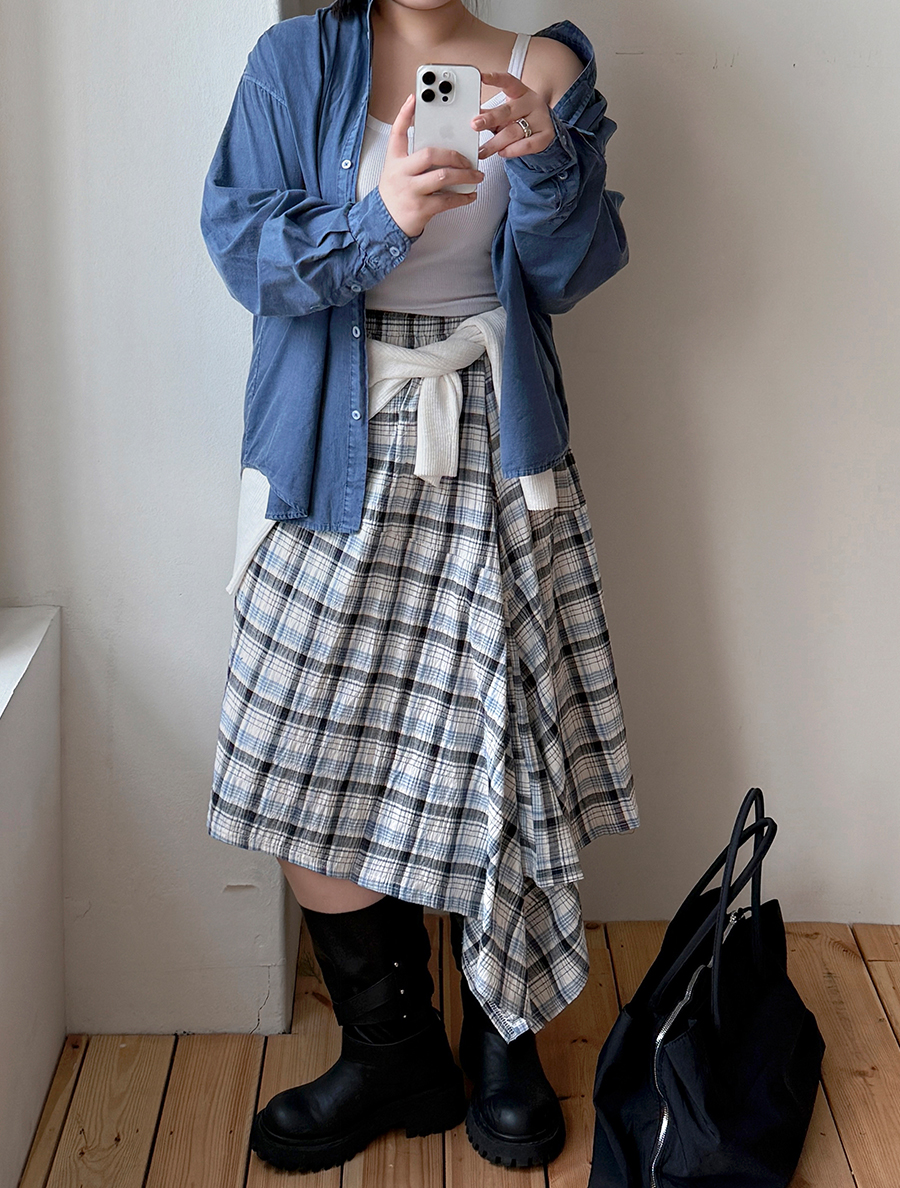 查普登格紋不平衡褶邊裙