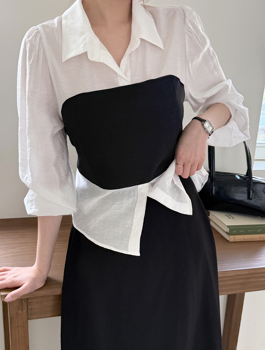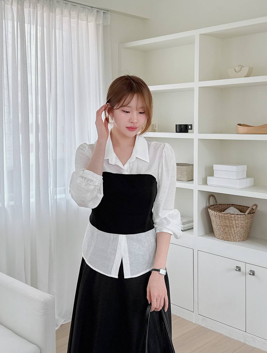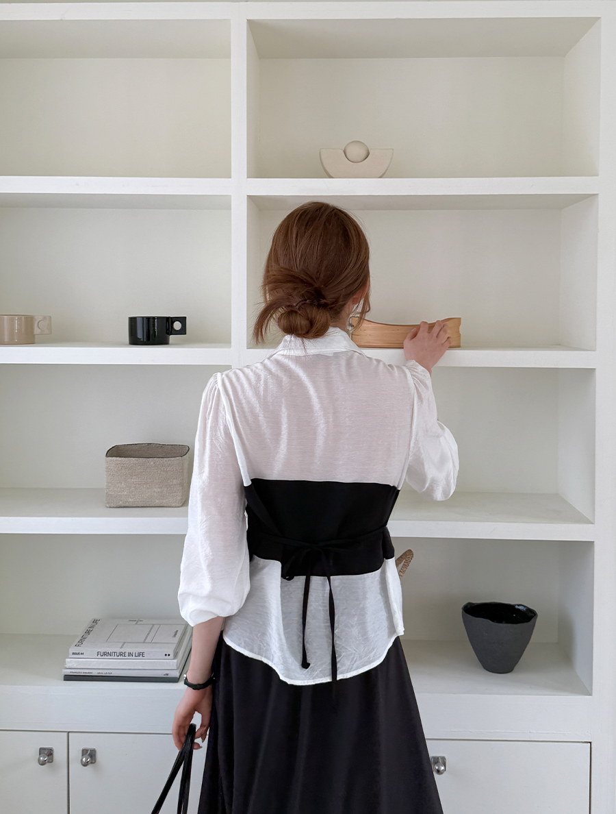 Timmons 配色 領子雪紡衫