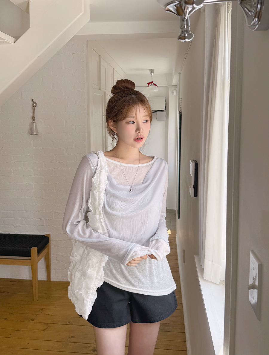 Harer 撞色疊層垂褶T卹