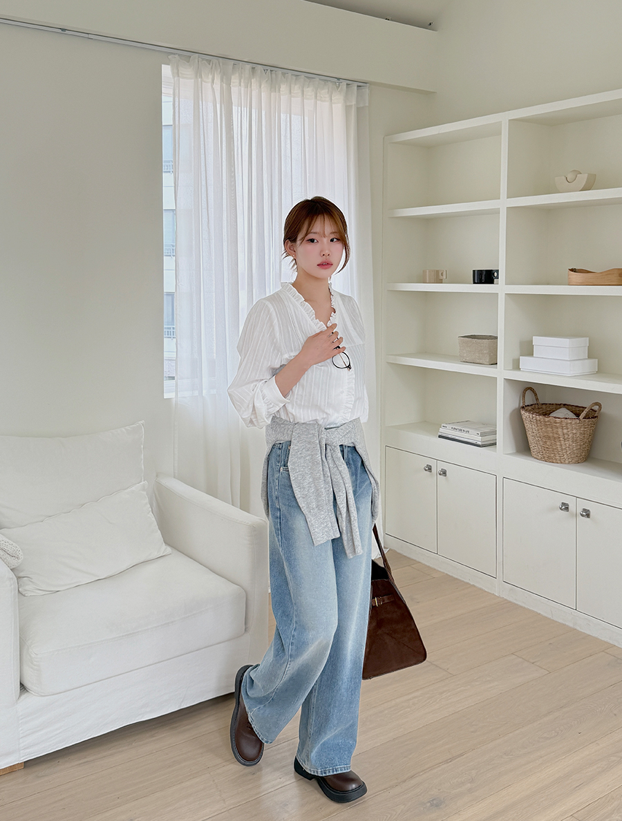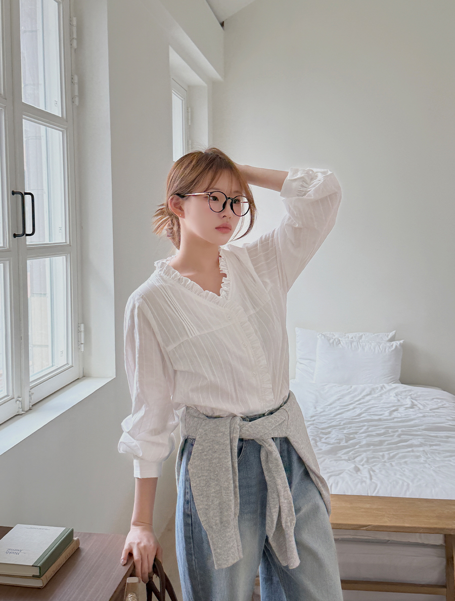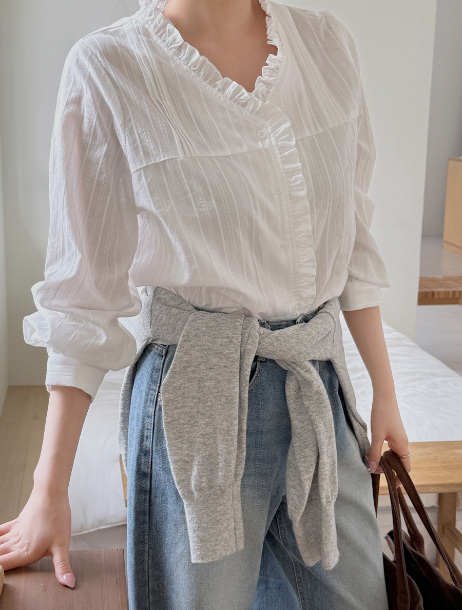 Tjupe 荷葉邊褶皺棉質女襯衫