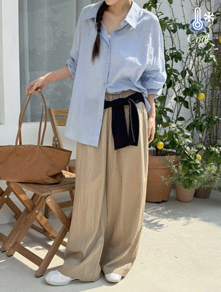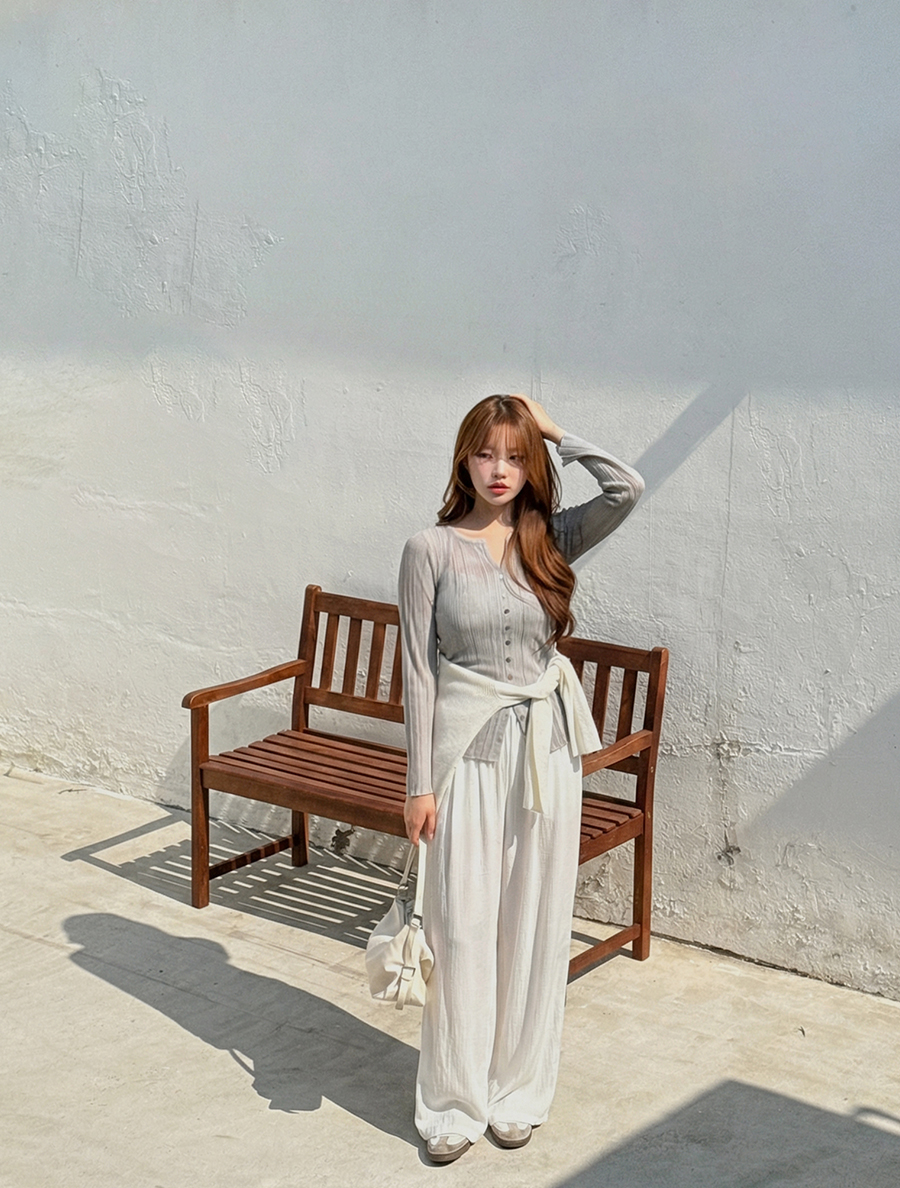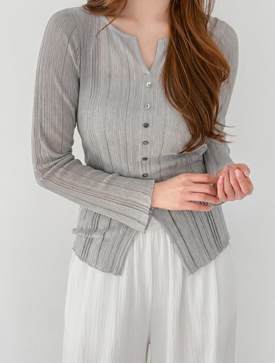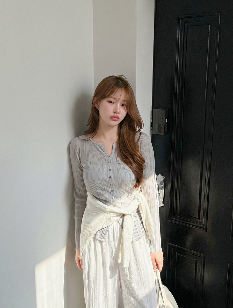 [EVELLET] 褶襉開衩領紐扣T卹