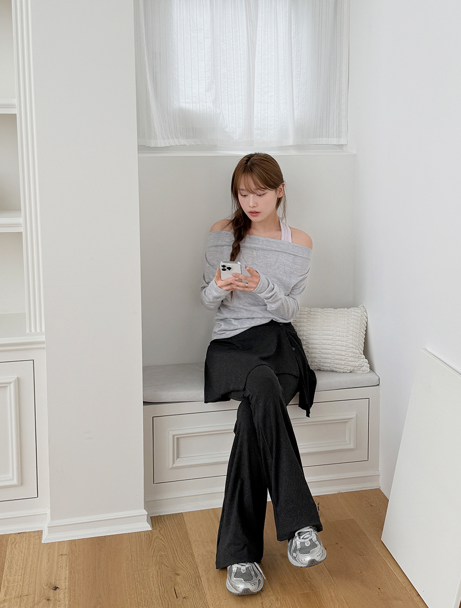 新潮的配色、露肩設計、褶皺T卹