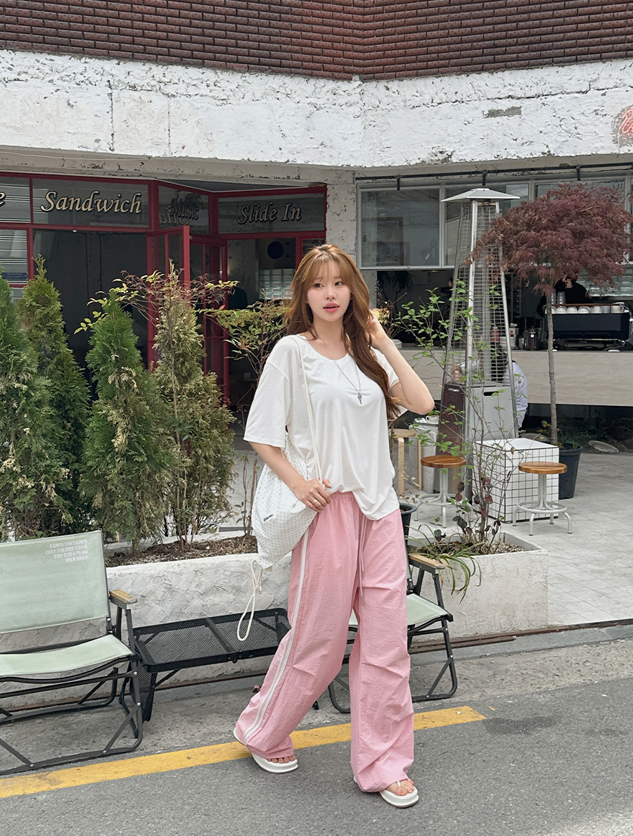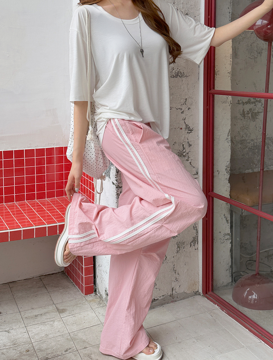 Denpui尼龍撞色運動長腰帶褲
