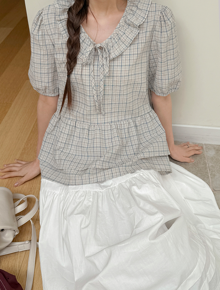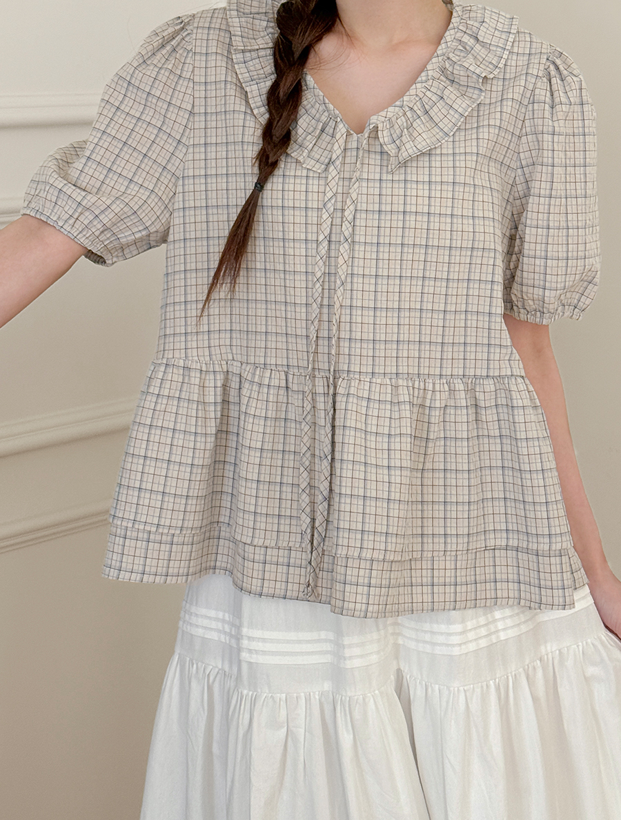 荷葉邊格紋襯衫