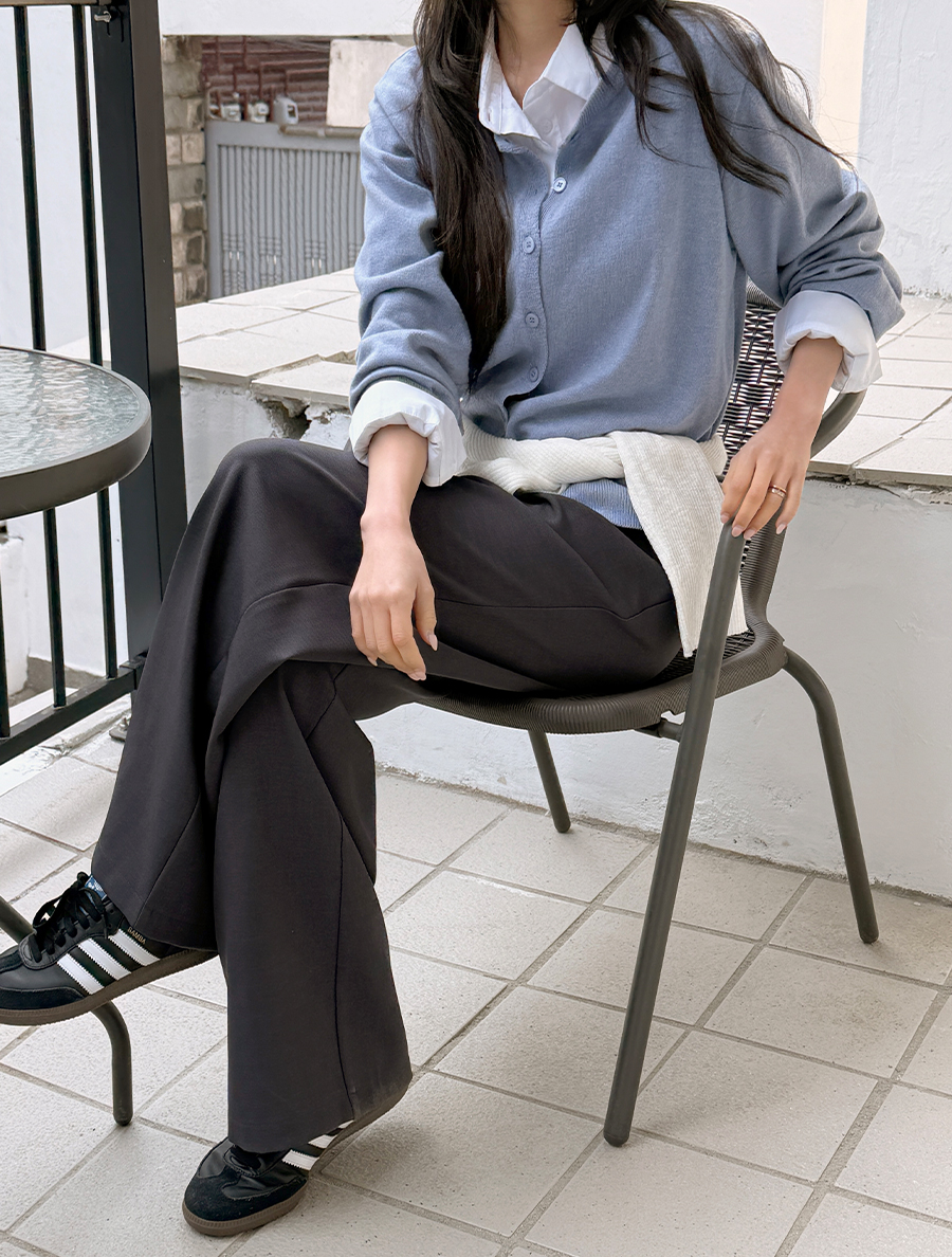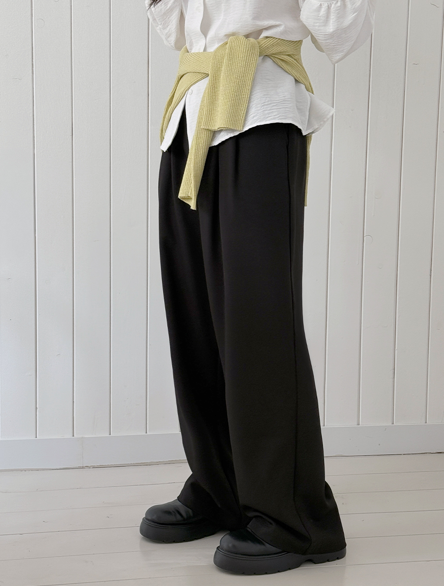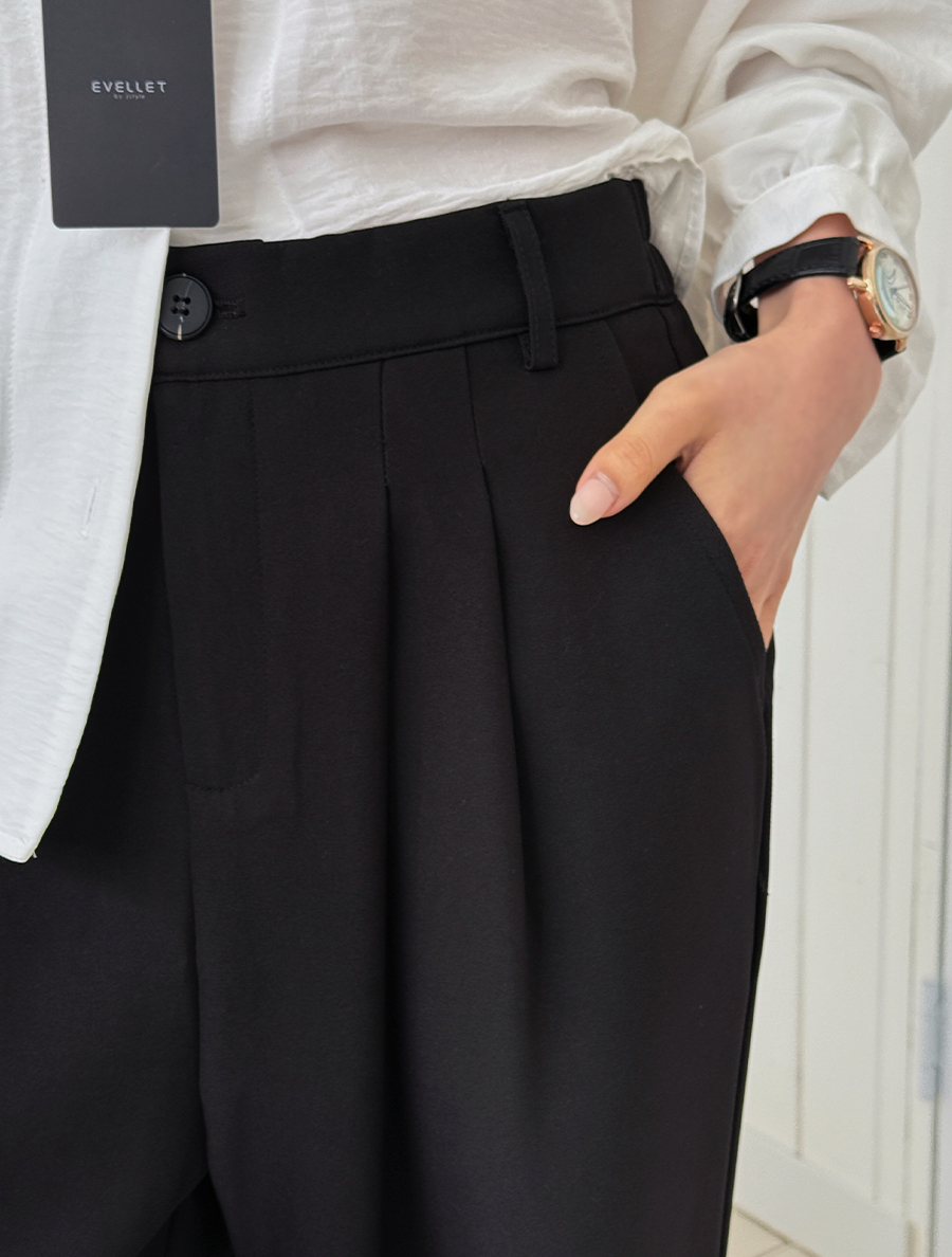 [EVELLET] 高階後附針褶寬長褲
