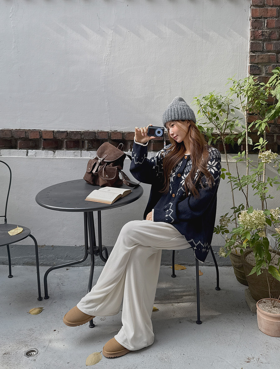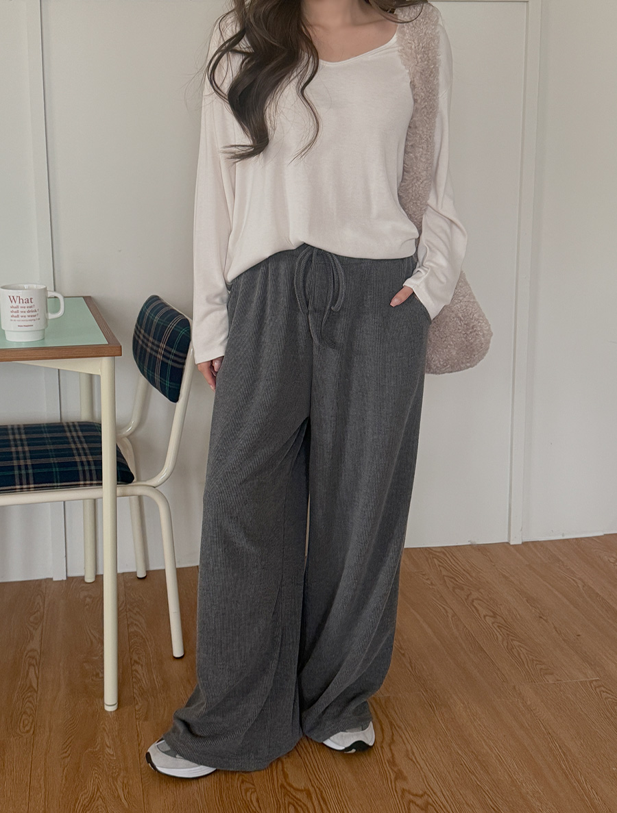 [EVELLET] 加熱羅紋拉絨寬裙