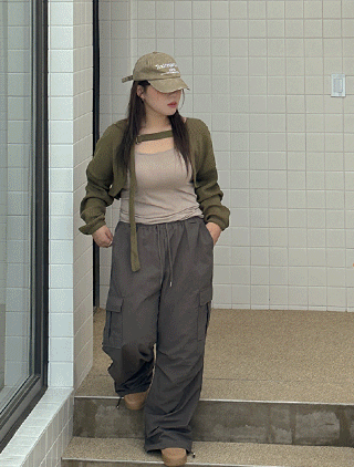 [EVELLET] Runenf配色口袋寬腰褲